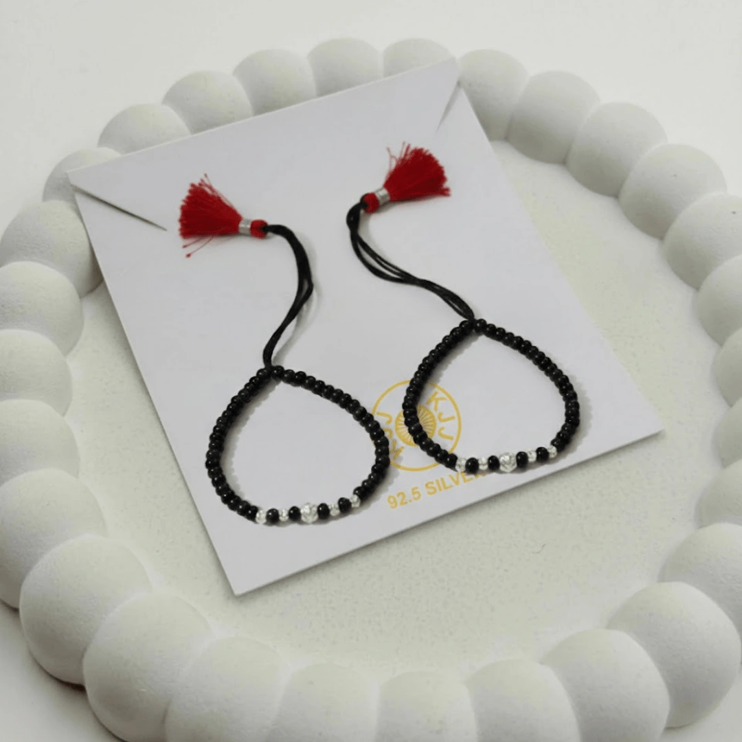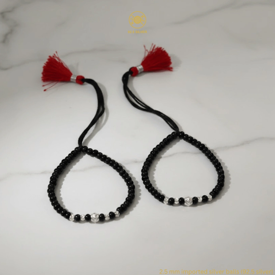 Handcrafted with certified 92.5 Sterling Silver, these bracelets are meticulously hand-strung on a soft, durable black cord with high-grade black beads to ward off negative energy. Designed specifically for sensitive infant skin, this set ensures your baby remains protected with the highest quality materials and a touch of modern, textured luxury.