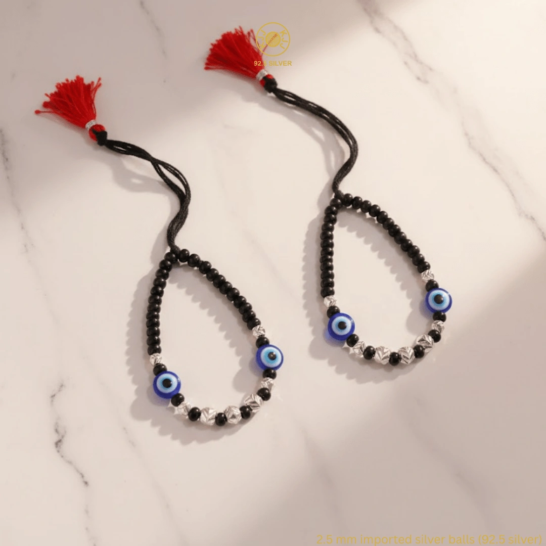 Handcrafted with certified 92.5 Sterling Silver, these bracelets are meticulously hand-strung on a soft, durable black cord with polished black beads to ward off negative energy. Designed specifically for sensitive infant skin, this set ensures your baby remains shielded with high-quality materials and a touch of modern, textured luxury.