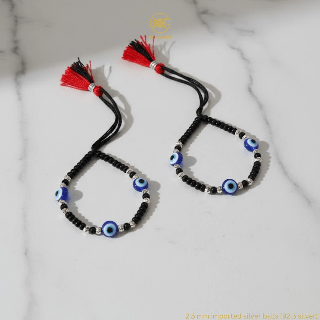 Handcrafted with certified 92.5 Sterling Silver, these bracelets are meticulously hand-strung on a soft, durable black cord with polished black beads to ward off negative energy. Designed specifically for sensitive infant skin, this set ensures your baby remains shielded with high-quality materials and a touch of modern, textured luxury.
