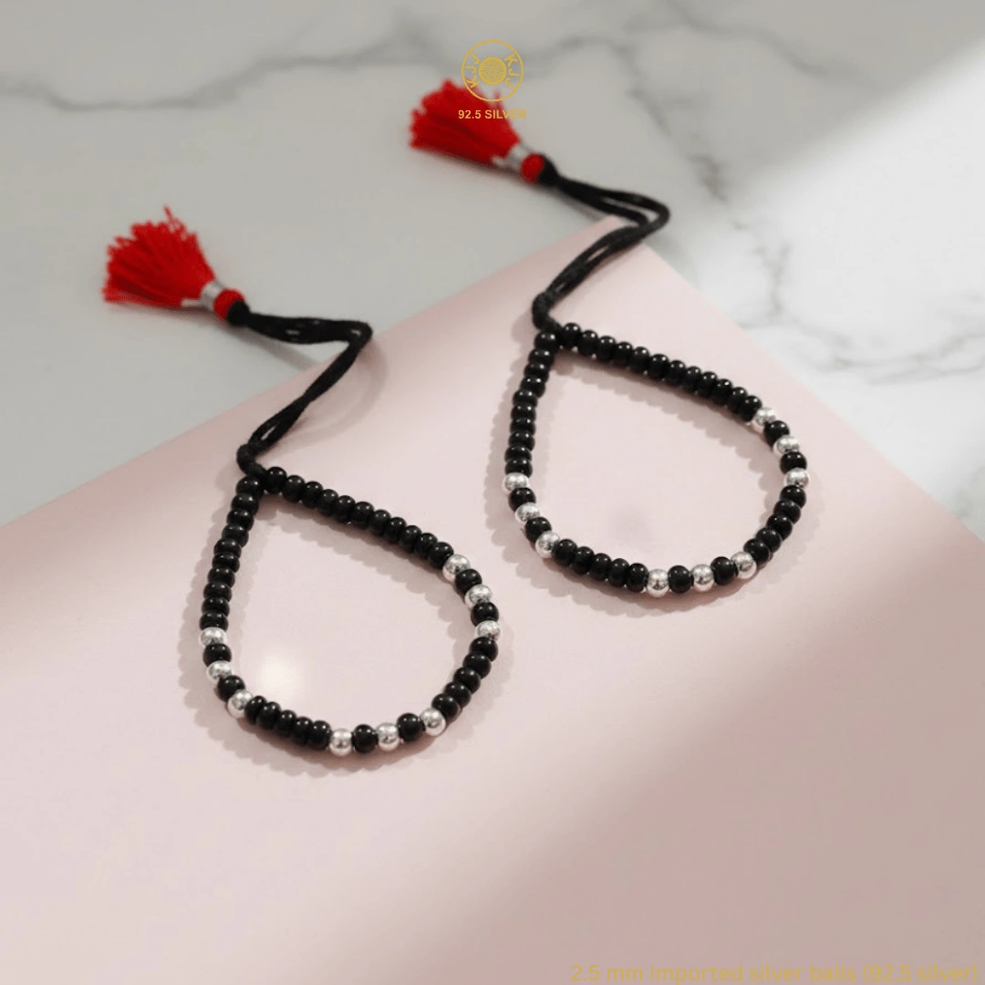 KJJ Signature 92.5 Sterling Silver Baby Nazariya – Handcrafted High-Density 2.5mm Imported Silver Ball Protective Bracelets (Set of 2)