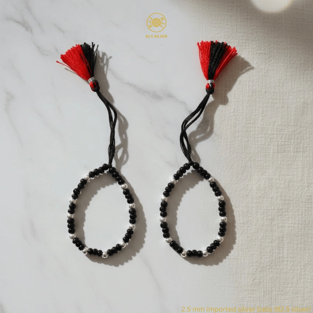 KJJ Signature 92.5 Sterling Silver Baby Nazariya – Handcrafted High-Density 2.5mm Imported Silver Ball Protective Bracelets (Set of 2)