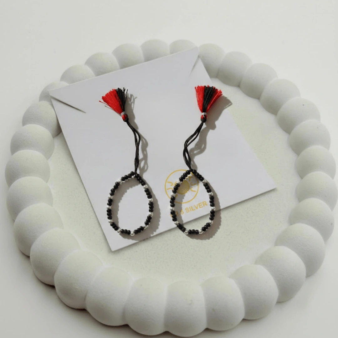 Elevate the traditional “Kala Dhaga” with the KJJ Signature High-Density Nazariya. This premium protective set is defined by its rich arrangement of 2.5mm imported silver balls, meticulously hand-strung to provide a sophisticated, mirror-like shine. The dense placement of these high-purity silver beads creates a continuous, radiant shimmer that honors traditional shielding while offering a modern, luxury aesthetic for your baby’s wrist.