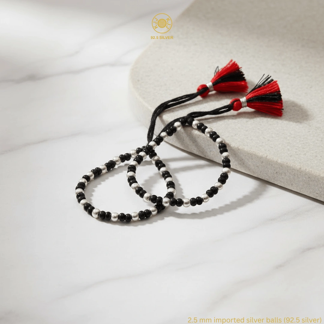 KJJ Signature 92.5 Sterling Silver Baby Nazariya – Handcrafted High-Density 2.5mm Imported Silver Ball Protective Bracelets (Set of 2)