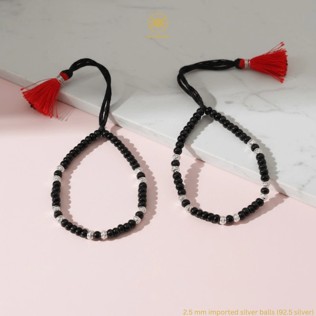 KJJ Signature 92.5 Sterling Silver Baby Nazariya – Handcrafted High-Density 2.5mm Imported Silver Ball Protective Bracelets (Set of 2)