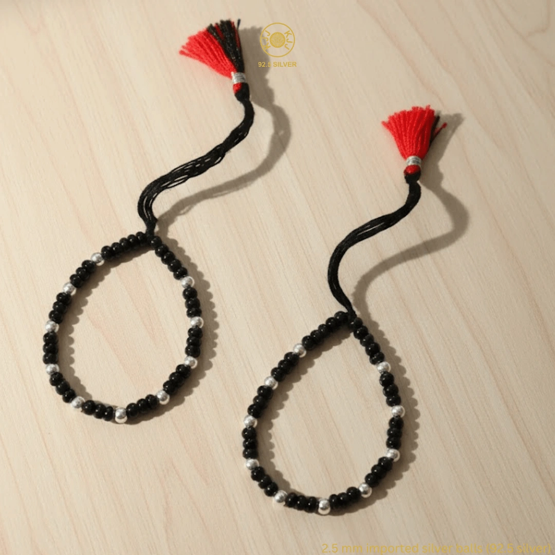 KJJ Signature 92.5 Sterling Silver Baby Nazariya – Handcrafted High-Density 2.5mm Imported Silver Ball Protective Bracelets (Set of 2)