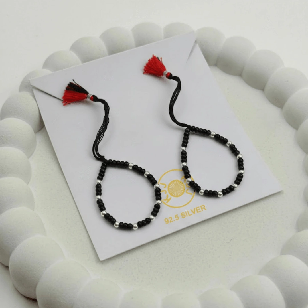 Handcrafted with certified 92.5 Sterling Silver, these bracelets feature a sequence of silver and polished black beads on a soft, durable cord designed to ward off negative energy. This high-density design is the ideal choice for parents seeking a “silver-forward” look that combines the spiritual power of a “Nazar Battu” with the elegance of a fine heirloom piece.